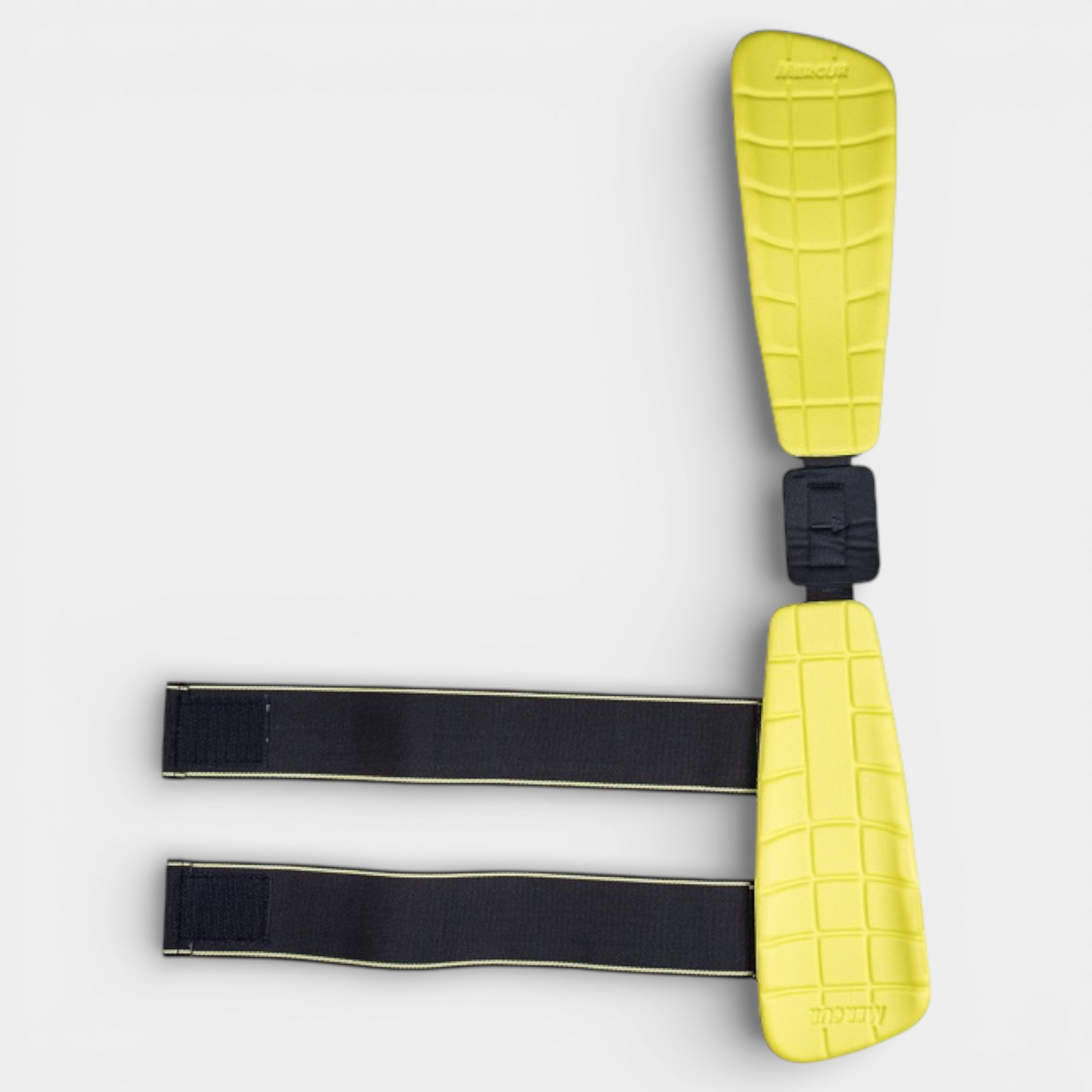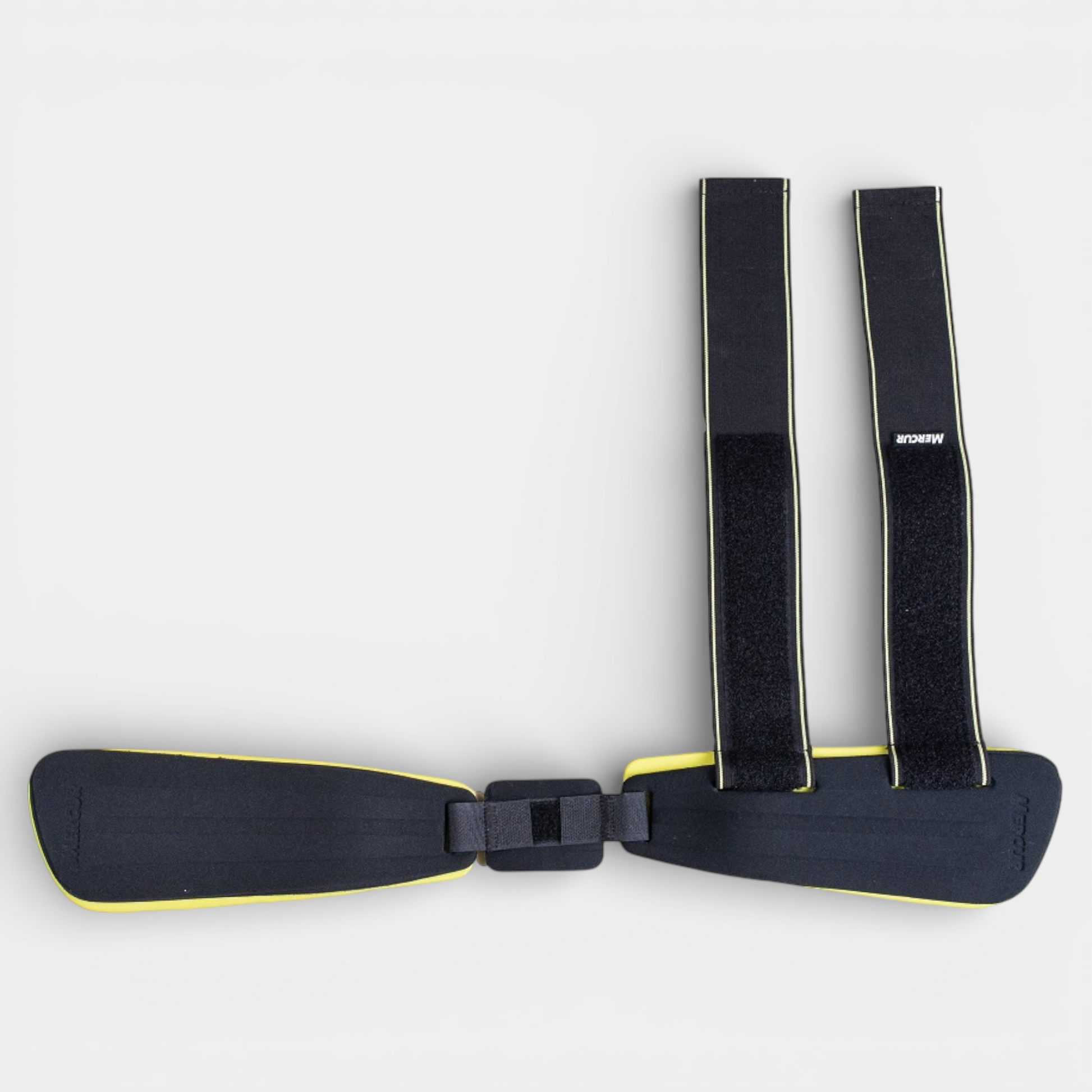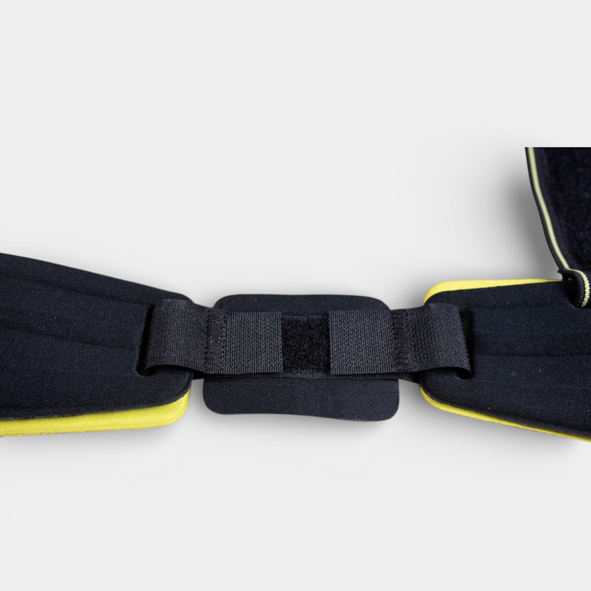O diferencial do produto é no conjunto: talas anatômicas (para restringir a lateralização) e ajuste por faixas/fechos aderentes , permitindo adaptação ao corpo e ao nível de especificações necessárias.